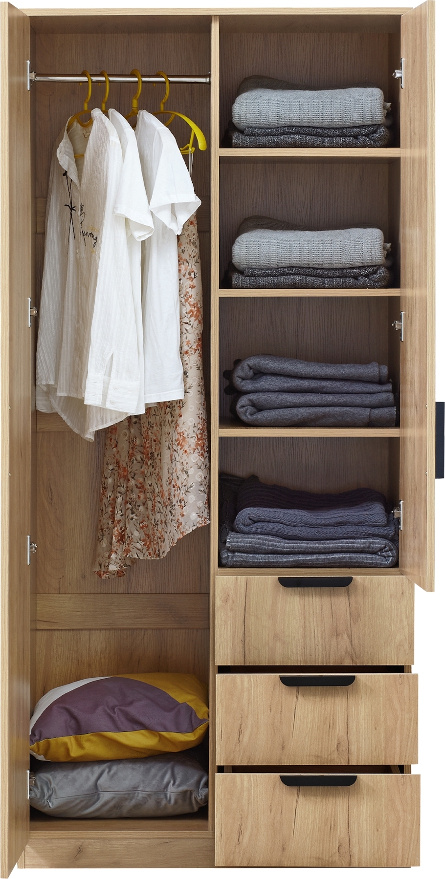 | Name | Kleiderschrank Eiselfing 176x80x52 cm 3 Schubladen Eicheoptik [en. casa] |