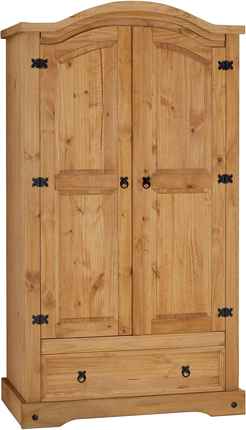 | Name | Kleiderschrank Salsa Garderobenschrank Mexiko Möbel Kiefer massiv, gebeizt/gewachst, 2 Türen und 1 Schublade |
