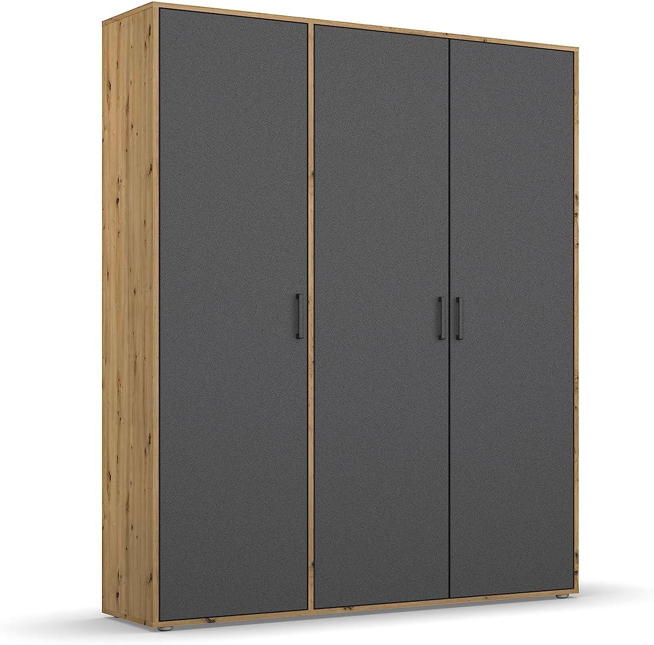| Name | Rauch Möbel Voyager Schrank Kleiderschrank Drehtürenschrank, Graumetallic/Eiche Artisan, 3-türig, inkl. 1 Kleiderstange, 4 Einlegeböden BxHxT 140x194x53 cm |