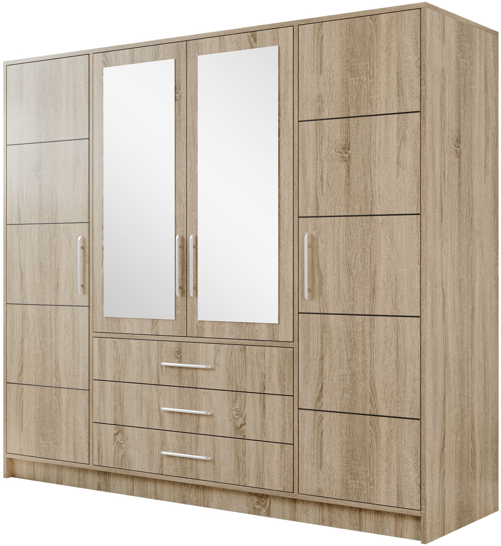 in DrehtürenschränkeMirjan24 'Bado 4D' Kleiderschrank mit Schubladen und SpiegelLaminatplatte Sonoma Eiche, 200 x 58 x 196 cm