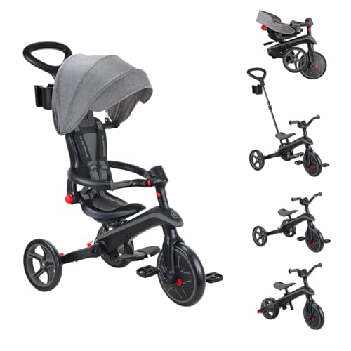 in DreiräderGlobber Explorer Trike Foldable 4in1 schwarz-grau – Kinderfahrzeug mit höhenverstellbarem TPR-Sitz und Sicherheitsausstattung