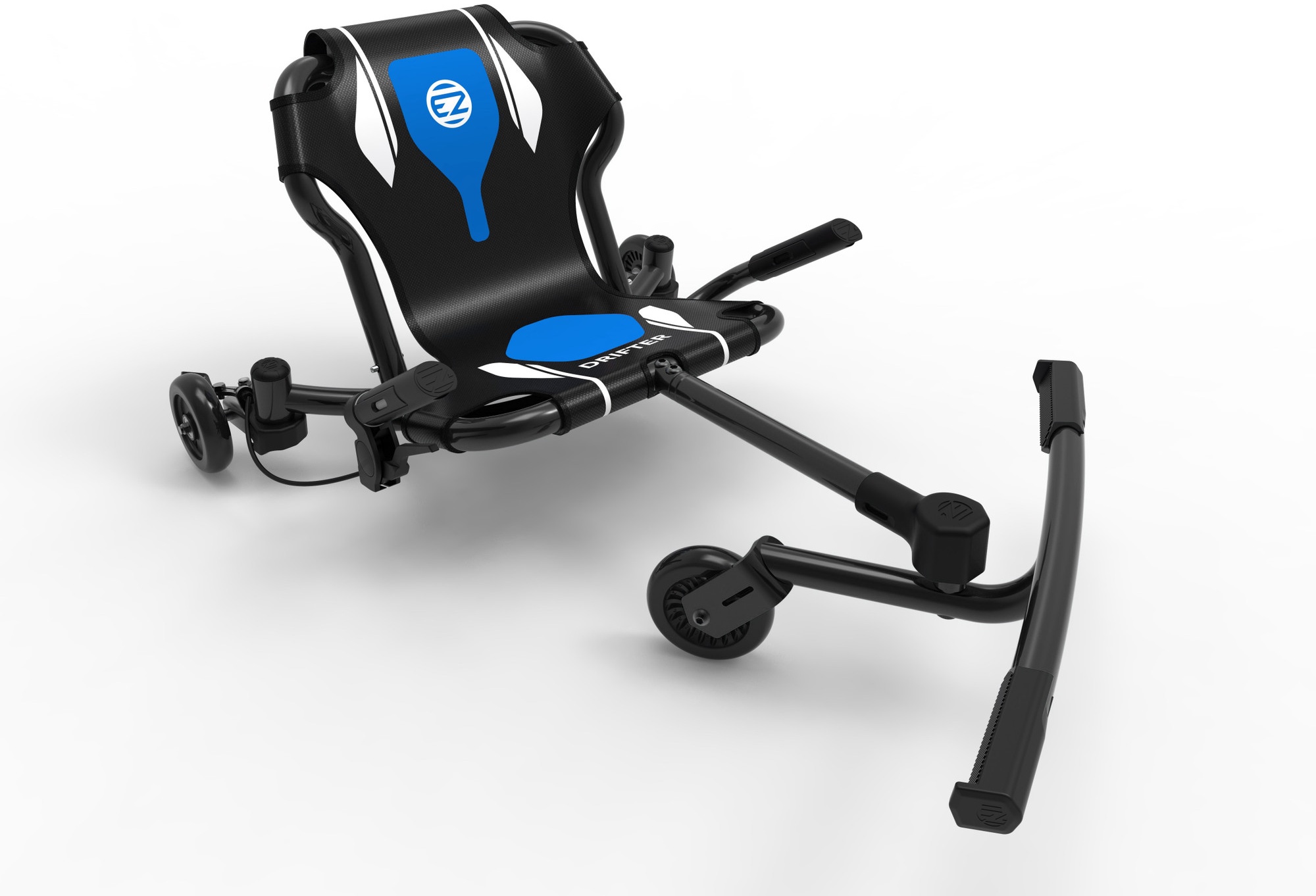 - Der EzyRoller Drifter X verfügt über ein schwenkbares Vorderrad, das durch Schlängelbewegungen zum Antreiben und Lenken genutzt wird.