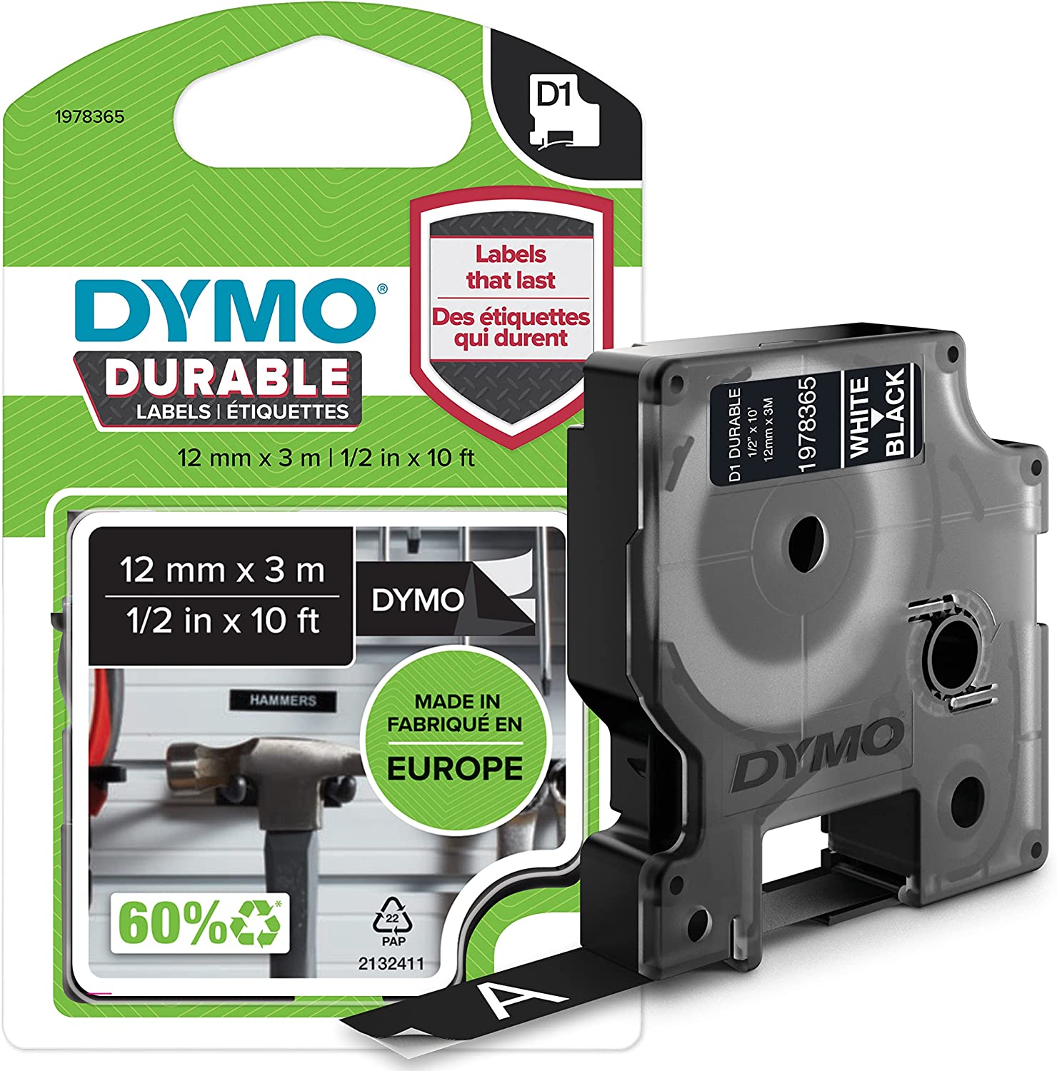 Dymo D1 Vinylband High Perf. 12 mm x 3 m weiß auf schwarz