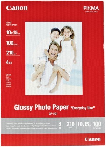 - Das Canon Fotopapier GP-501 hat ein Format von 10,0 x 15,0 cm und ein Papiergewicht von 200 g/qm, was es ideal für hochwertige Fotodrucke macht.