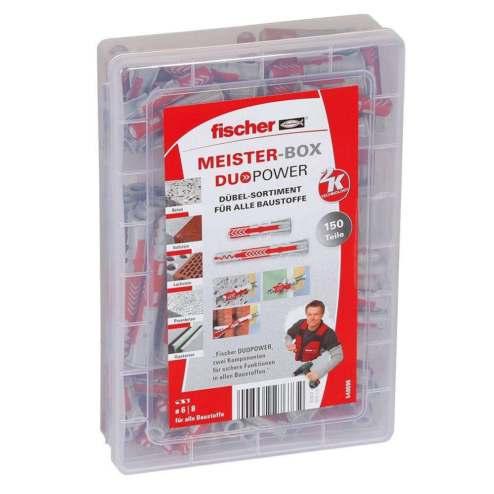 fischer Meister-Box DUOPOWER kurz-langDübelbox mit 150 Teilen (60 Stück 6 x 30, 40 Stück 8 x 40, 30 Stück 6 x 50, 20 Stück 8 x 65), Universaldübel, Praktische Dübelkiste für Heimwerker und Profis