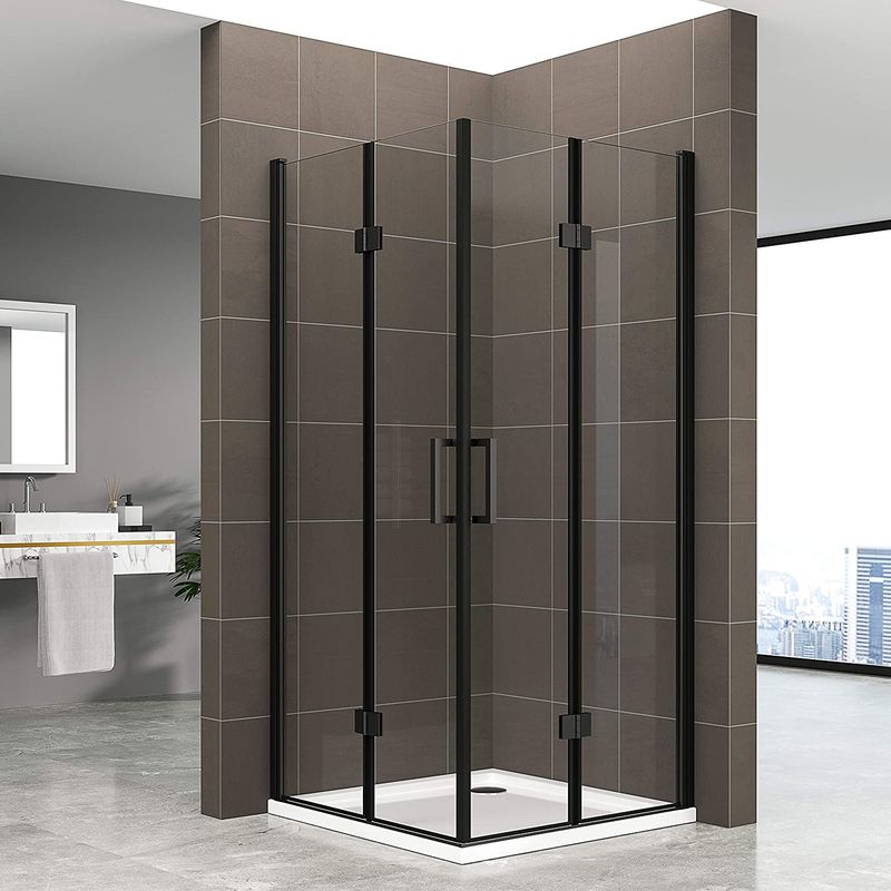 Duschkabine Belle mit Falttüren Eckduschkabine aus durchsichtigem ESG Sicherheitsglas 180 cm hoch mit schwarzen Aluprofilen DGK63 95x95 cm - Duschbär