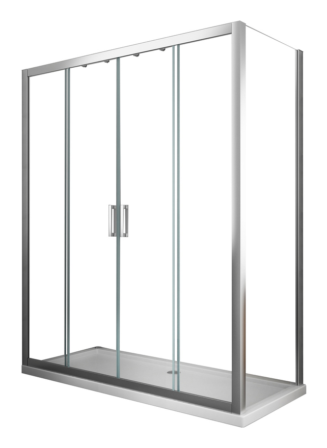 Duschkabine 6 mm mit Festwand H 190 und 4-Blatt-Tür mit fester zentraler Öffnung 87,5-90 Vordertür 143-148