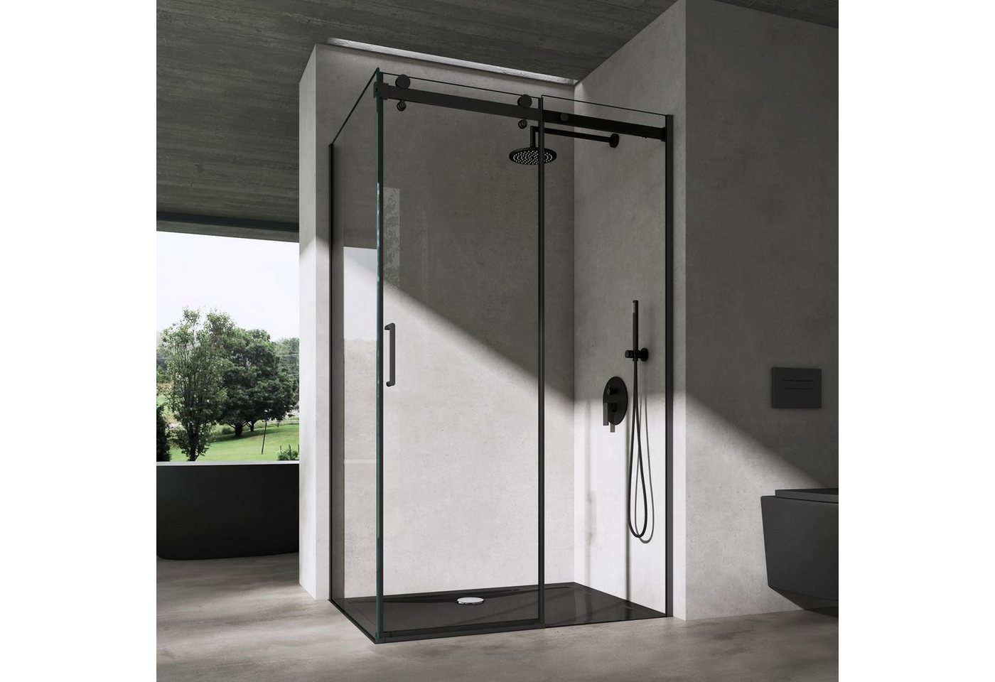 doporro Eckdusche Duschkabine Ravenna19K schwarz ESG-Sicherheitsglas Nano-BeschichtungBxT: 100x70 cm, Einscheibensicherheitsglas, mit Schiebetür