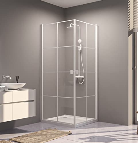 in DuschenMARWELL Glasdusche Clean Line 90 x 90 x 200 cm – Eckdusche in modernen Design - Duschkabine mit hochwertigen Aluminiumprofilen in matt weiß