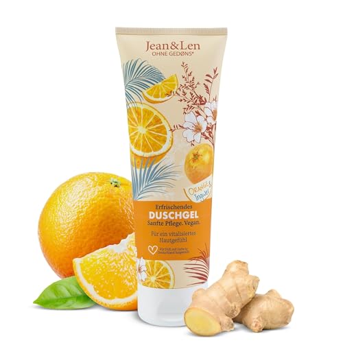 - Das Jean & Len Duschgel Orange & Ingwer bietet ein erfrischendes Duscherlebnis mit einem fruchtigen und vitalisierenden Duft