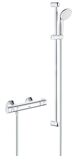 in DuschinstallationGrohe Grohtherm 800 | Brause- und Duschsystem - Thermostat -Brausebatterie | Inklusive Brausegarnitur | Schutz vor Hautverbrennungen bei 38 °C und 43 °C | Chrom | 34566001900 mm