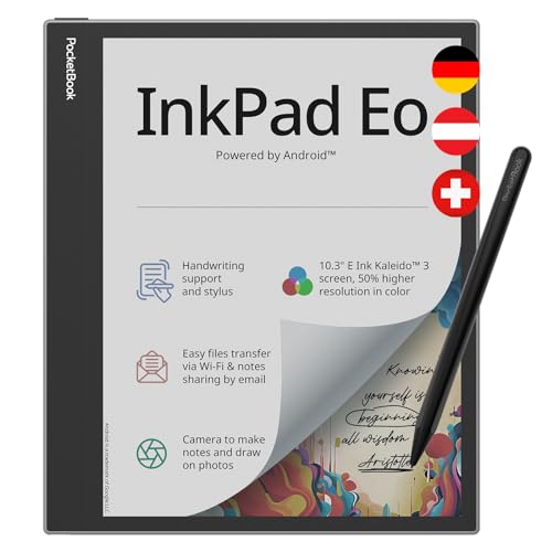 - Der PocketBook e-Book Reader 'InkPad Eo' bietet ein beeindruckendes visuelles Erlebnis auf seinem 10,3 Zoll (26,12 cm) E-Ink Kaleido 3-Bildschirm mit 50% höherer Auflösung in Farbe
