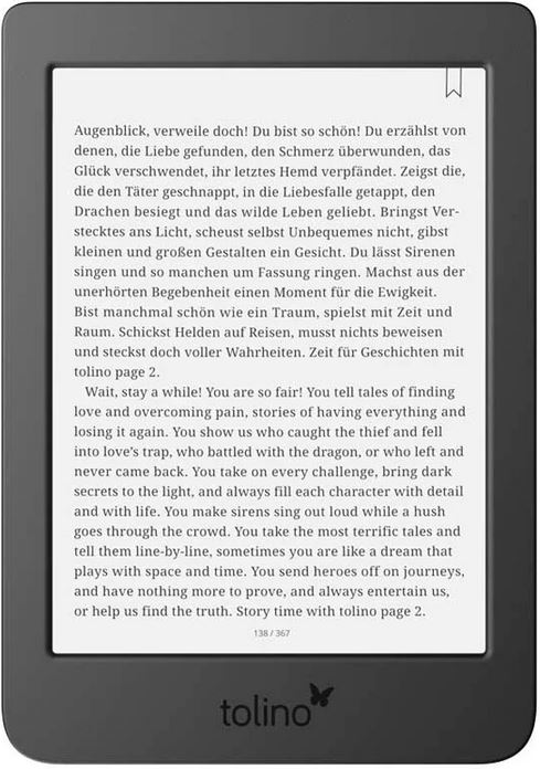 Hörbuch-Wiedergabe via Bluetooth, Notizbuchfunktion mit tolino stylus, smartLight Beleuchtung, automatische Display-Rotation, wassergeschützt