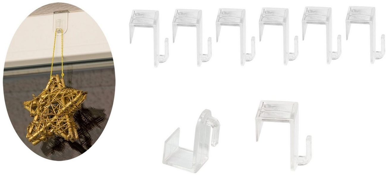 | Name | BigDean 8er Set Fenster- und Türhaken - Aus transparentem Kunststoff - Unauffällig & Effizient - Für ein Fensterfalz von max. 1,7 cm - Ideal für Lichterketten, Dekoanhänger & Weihnachts-Deko - |