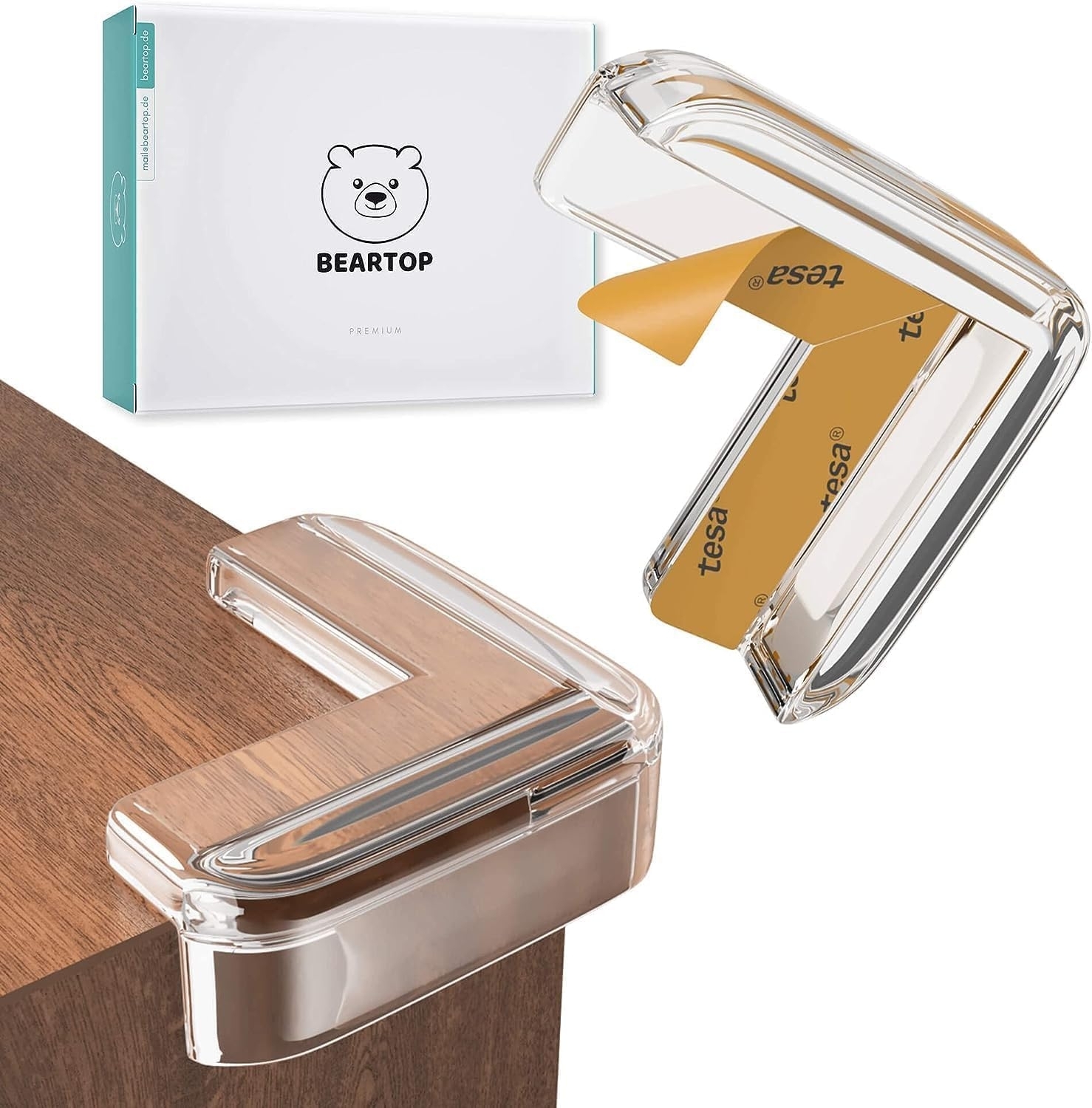 Der Eckenschutz von BEARTOP bietet zuverlässigen Schutz für Babys und ältere Menschen. Er ist transparent, flexibel und aus einem hochwertigen, BPA-freien Material gefertigt. Dank des TESA Klebers lässt sich der Eckenschutz einfach und sicher anbringen. Er erfüllt alle Sicherheitsvorschriften und ist TÜV-geprüft. Mit einer 3-jährigen Zufriedenheitsgarantie sorgt BEARTOP für Ihre Sicherheit und Zufriedenheit. **Highlights** - Frei von BPA und Schadstoffen: Sicher für den Einsatz in Haushalten mit Babys und älteren Menschen. - Einfache Installation mit TESA Kleber: Schnell und sicher anbringbar, ohne Abfallen. - Transparentes Design: Unauffällig und passt sich gut an Möbelstücke an. - Flexibles und elastisches Material: Bietet guten Schutz und ist angenehm anzufassen. - 3-jährige Zufriedenheitsgarantie: Kostenloser Ersatz oder Geld-zurück-Garantie bei Problemen. **Produkteigenschaften** - Geprüft von anerkanntem Institut (Prüfbericht 0003288595/30 AZ 339063 von 2019) - Material: Transparentes, flexibles Material - Farbe: Transparent - Zufriedenheitsgarantie: 3 Jahre - Hersteller: BEARTOP, Start Up aus der Nähe von Berlin **Lieferumfang** - Eckenschutz von BEARTOP - TESA Kleber (bereits am Eckenschutz befestigt)