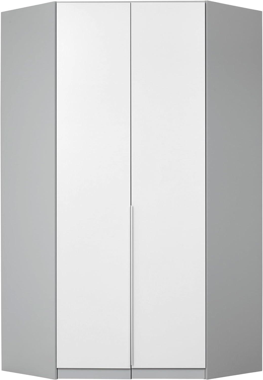 Der Rauch Möbel Alabama Eckschrank ist ein stilvoller 2-türiger Kleiderschrank in Weiß/Grau, der mit seinen Maßen von 117 x 229 x 117 cm viel Stauraum bietet. Ausgestattet mit 1 Kleiderstange und 12 Einlegeböden, ist er ideal für die Organisation Ihrer Kleidung. Hergestellt in Deutschland aus zertifiziert nachhaltigen Materialien, vereint er Funktionalität und Umweltbewusstsein. **Highlights** - Verschiedene Breiten und Höhen wählbar: Passend für jeden Raum - Optionale Spiegeltüren: Bringen Licht und Weite in den Raum - Drei Innenausstattungspakete: Für individuelle Erweiterung des Stauraums - Nachhaltige Produktion: 100% Made in Germany - Inklusive Zubehörpaket Basic **Produkteigenschaften** - Farbe: Weiß / Grau - Material: Holzwerkstoff - Maße: 117 x 229 x 117 cm - 2 Türen - 1 Kleiderstange - 12 Einlegeböden **Lieferumfang** - 1 Schrank in Weiß / Grau - Material: Holzwerkstoff - Maße: 117 x 229 x 117 cm - 1 Kleiderstange - 12 Einlegeböden - 6 Packstücke - Lieferzustand: Zerlegt, einfache Montage