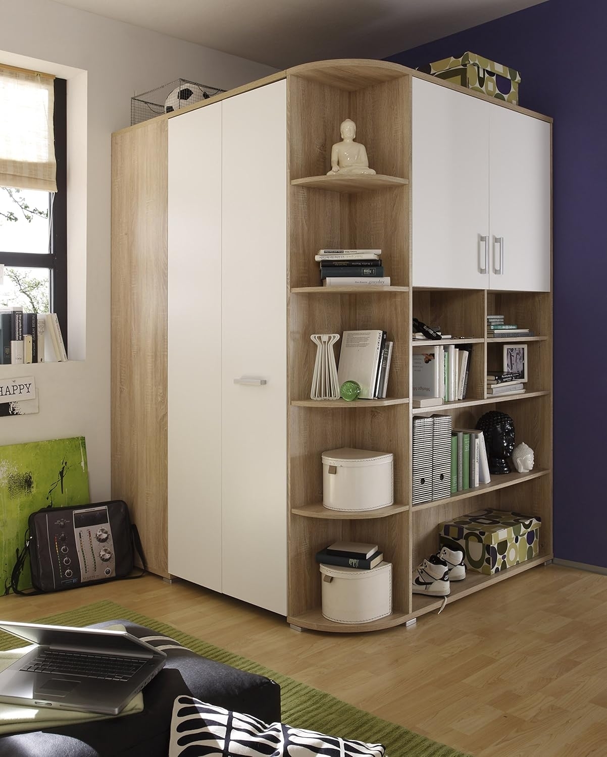 | Name | Stella 'Corner Nessi' Eckkleiderschrank begehbar mit Kleiderstange und 6 Kleiderhaken, sonoma/weiß |