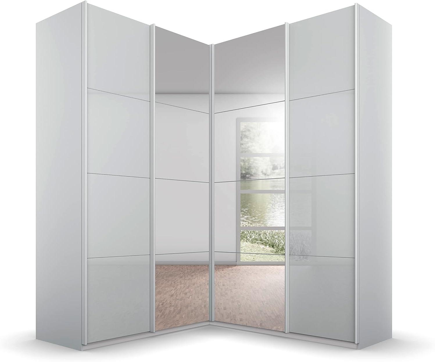 | Name | Rauch Möbel Quadra Schrank Eckschrank Schwebetürenschrank, Grau, 4-trg. mit Spiegel, inkl. 2 Kleiderstangen, 12 Einlegeböden, 3 Schubkästen, BxHxT 181 x 229 x 187 cm |