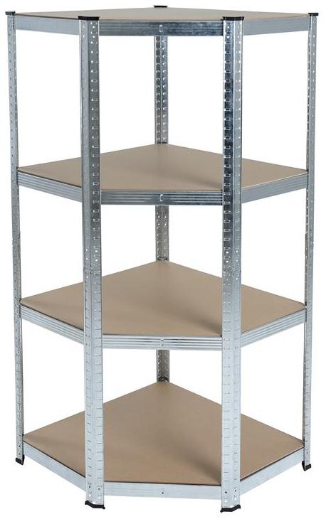 Beschreibung Das Steckregal Eckregal Lagerregal 160 x 70 x 40 cm aus verzinktem Stahlrahmen mit 4 höhenverstellbaren MDF-Böden bietet eine maximale Traglast von 600 kg. Die Montage im Stecksystem ist einfach und das Regal kann mit anderen kombiniert werden. **Highlights** - Optimale Nutzung von Ecken - Stabiler Stahlrahmen mit Querstreben für mehr Stabilität - Beliebig höhenverstellbare Böden - Maximale Traglast von 600 kg - Einfacher Aufbau im Stecksystem **Produkteigenschaften** - Maße (HxBxT): 160 x 70 x 40 cm - Maximale Tragkraft pro Boden: 150 kg - Material Gestell: Metall, verzinkt - Material Boden: MDF Holzpressspan (ca. 4 mm stark) - Anzahl der Böden: 4 - Gewicht: ca. 12,4 kg **Lieferumfang** - 1 Eckregal - Inklusive Montagematerial