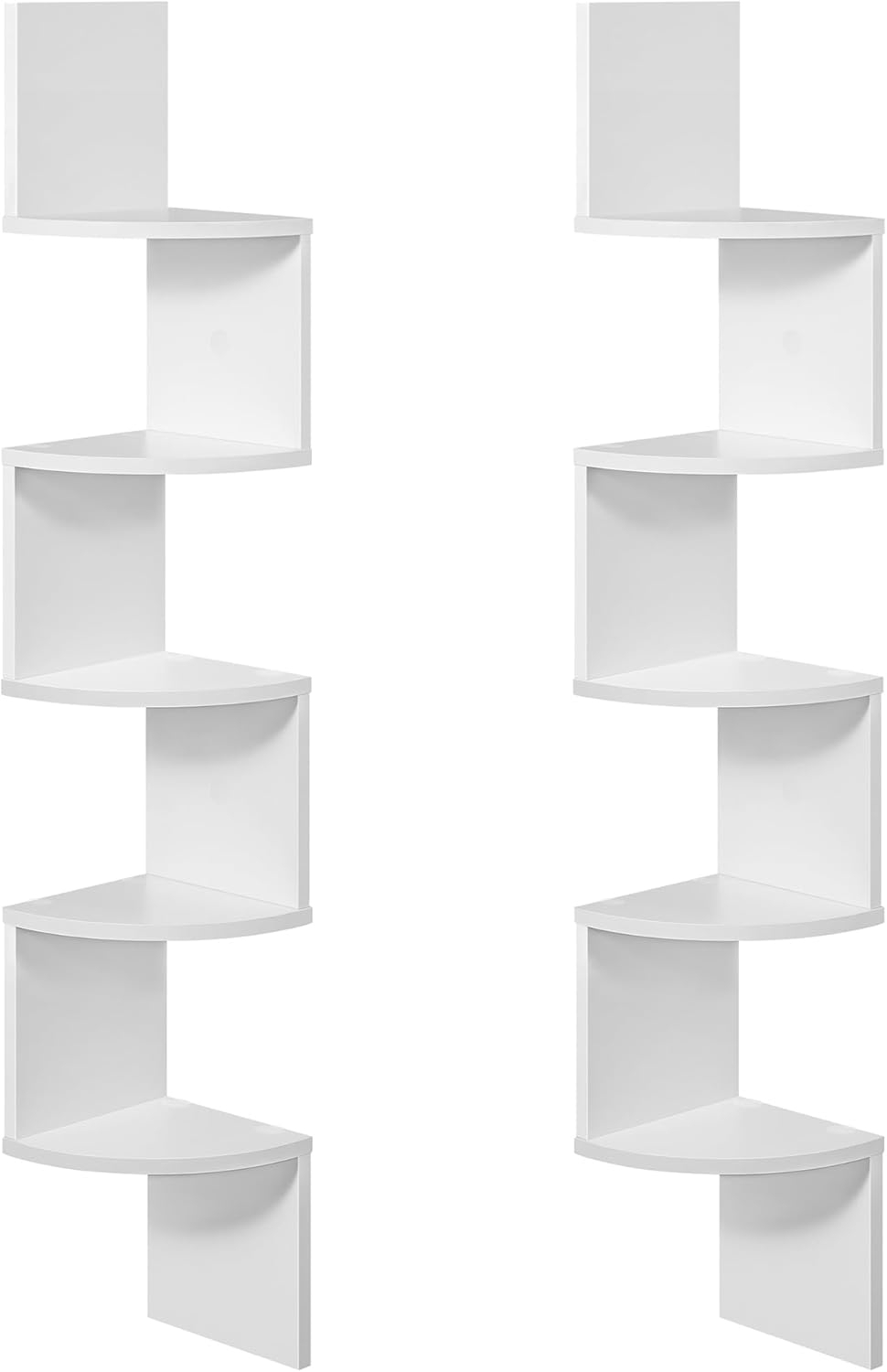 **1.Elegantes Eckregal:** Ordnen Sie all Ihre Bücher, präsentieren Sie Ihre Lieblings-Dekostücke oder nutzen Sie das Wandregal selbst als innovatives Dekorationsaccessoire **2.Nutzen Sie Ihre Ecken:** Dank des Abstands von 20 cm zwischen den einzelnen Ebenen ist das 5-stufige Regal ideal für Pflanztöpfe, Spielzeug und Deko geeignet. Da es nur 20 x 20 x 127,5 cm groß ist, können Sie es zudem auch in Ecken kleiner Räume nutzen **3.Erfreut Sie über viele Jahre hinweg:** Die 15 mm dicken Holzspanplatten sorgen für die hohe Belastbarkeit des Regals (bis zu 15 kg pro Ebene). Auch die Wandverankerungen gewährleisten eine hohe Stabilität. Die Melamin-Furnier-Oberfläche ist zudem kratz- und verschleißfest **4.Wohnen Sie stilvoll und praktisch:** Die einzigartige Zickzack-Form und die abgerundeten Fachböden sorgen dafür, dass das Regal sowohl ästhetisch ansprechend als auch kinderfreundlich ist. Nutzen Sie dieses offene Schweberegal in Ihrem Wohnzimmer, Schlafzimmer oder Arbeitszimmer **5.Was Sie Bekommen?** Ein einfach zu installierendes Eckwandregal, eine detaillierte Anleitung sowie eine schöne Möglichkeit, Ihre Ecken zur Präsentation von Deko zu nutzen **Produktdetails:** -Farbe: Weiß -Material: Holzspanplatte -Produktmaße: 20 x 20 x 127,5 cm (L x B x H) -Gewicht: 4,5 kg -Max. statische Belastbarkeit pro Ablage: 15 kg **Lieferumfang:** -1 x Bücherregal -1 x Zubehörpaket -1 x Anleitung (DE, EN, FR, ES, IT) **VASAGLE Hinweise:** -Reinigen Sie das Bücherregal bitte mit einem feuchten Tuch und wischen Sie es dann trocken.
