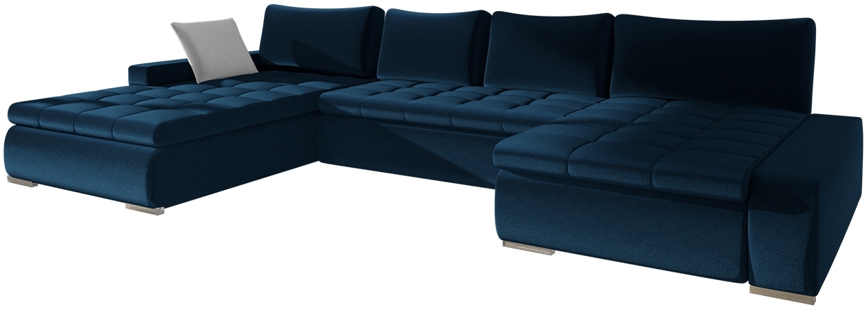 Ecksofa Caro (Kronos 09 + Paros 05) bietet Ihnen eine großzügige Sitzfläche und eine praktische Schlaffunktion. Mit einer Länge von 394 cm und einer Breite von 213 cm ist es ideal für Ihr Wohnzimmer. Die Schlaffläche von 340 x 140 cm und der integrierte Bettkasten sorgen für zusätzlichen Komfort und Stauraum. Die hochwertige Holzkonstruktion und der Schaumstoff sorgen für eine angenehme Sitzqualität. **Highlights** - Ausziehbares Ecksofa mit Schlaffunktion - Integrierter Bettkasten für zusätzlichen Stauraum - Kissen mit Reißverschluss für einfache Pflege - Universelle Montageoption für rechts oder links - Robuste Holzkonstruktion für Langlebigkeit **Produkteigenschaften** - Maße (LxBxH): 394 x 213 x 80 cm - Schlaffläche: 340 x 140 cm - Bettkasten Maße (LxBxH): 152 x 55 x 21 cm - Sitzfläche: Schaumstoff T-2844 + Wellenfeder - Ausführung: Holzkonstruktion + Spanplatte **Lieferumfang** - Ecksofa Caro - Kissen (im Lieferumfang enthalten) - Ohne Dekoration