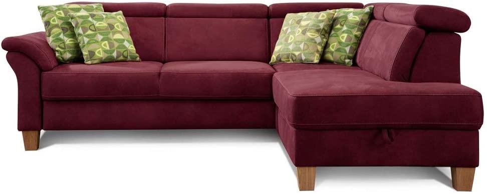 | Name | Cavadore Ecksofa Ammerland mit Ottomane rechts / Federkern-Sofa im Landhausstil mit verstellbaren Kopfstützen / 245 x 84 x 194 / Lederoptik rot |