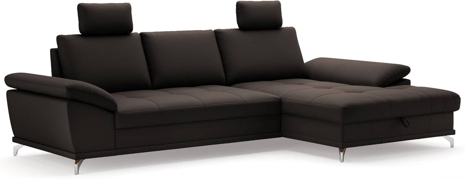 | Name | Cavadore Ecksofa Castiel mit Federkern / Eckcouch mit großem Longchair, Sitztiefenverstellung, Kopfstützen und mattschwarzen Metallfüßen / 301x89-114x176 / Echtleder, Dunkelbraun |