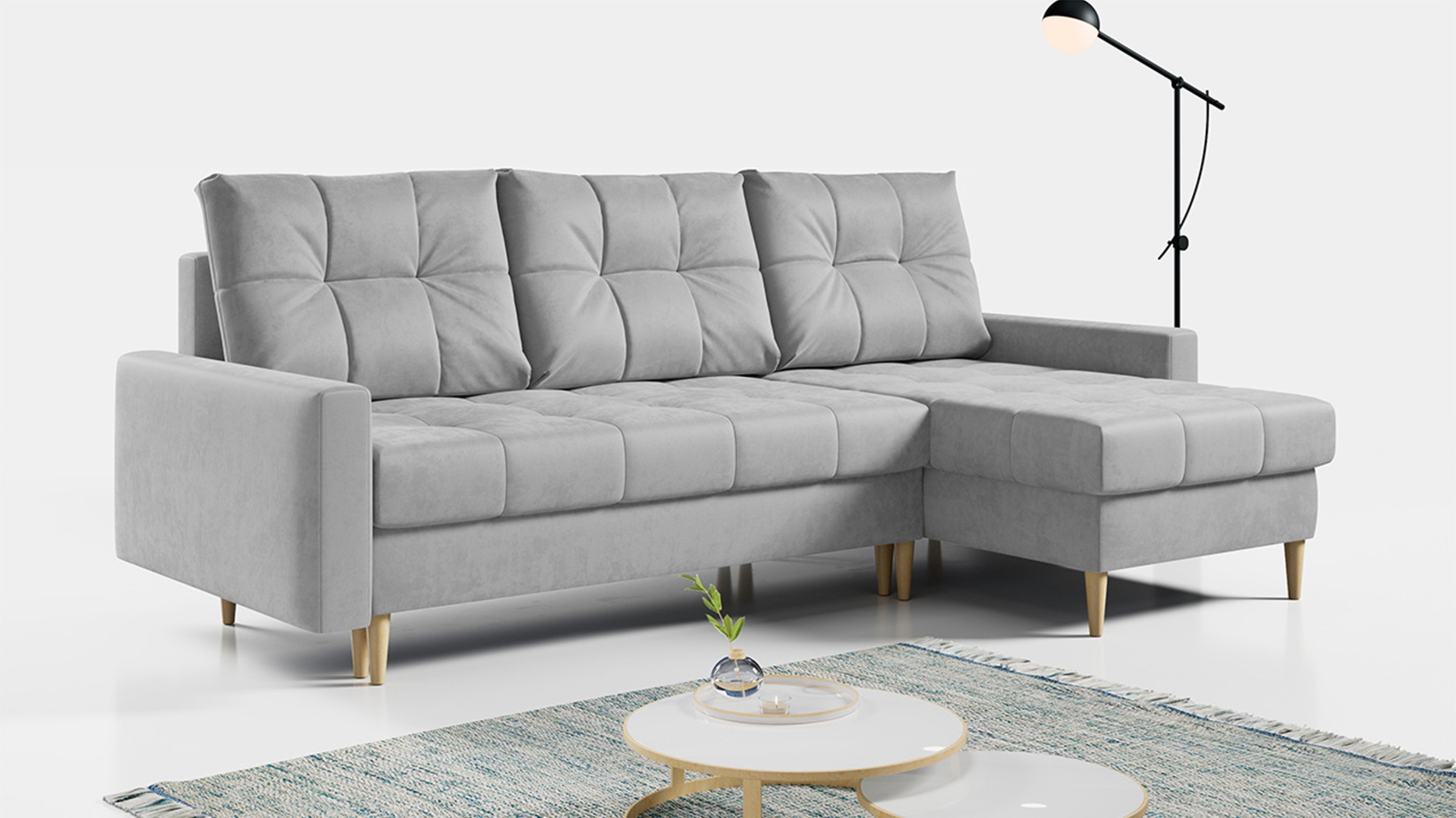 **Wohnkomfort neu definiert: Das Ecksofa im skandinavischen Design** Astra Ecksofa im skandinavischen Stil besticht durch seine klare, minimalistische Ästhetik und seine Funktionalität. Dieses Möbelstück vereint schlichtes Design mit hoher Qualität. Die Kombination aus schlichter Schönheit, natürlichen Materialien und praktischen Details macht das Ecksofa zu einem zeitlosen Möbelstück, das in jeder Wohnung eine gute Figur macht und ein gemütliches Ambiente schafft. **Ecksofa mit Schlaffunktion** Dieses Ecksofa begeistert nicht nur durch sein elegantes Aussehen und seinen Komfort, sondern hat auch eine Schlaffunktion. Dank des einfachen Klappmechanismus verwandelt sich das Sofa schnell in ein bequemes Bett und bietet zusätzlichen Schlafplatz für Gäste oder Haushaltsmitglieder. **Praktischer Bettkasten** Die Funktionalität des Sofas macht es zur idealen Wahl für Wohnungen, in denen es auf eine effiziente Raumnutzung ankommt. Der Bettkasten, der diskret unter dem Sitz versteckt ist, vereint Ästhetik und Funktionalität und bietet zusätzlichen Stauraum. **Lose Kissen** Das Ecksofa ist mit losen Kissen auf der Basis ausgestattet, die einen außergewöhnlichen Komfort und eine einfache Anpassung an die individuellen Bedürfnisse bieten. Dadurch können die Weichheit und die Form der Rückenlehne frei angepasst werden, was den Bedienkomfort erhöht. **Eleganz und Funktionalität in skandinavischem Design** Die Ecksofas im skandinavischen Stil zeichnet sich durch ihre Eleganz und hohe Funktionalität aus. Ihre minimalistischen Linien verleihen dem Innenraum eine einladende Gemütlichkeit und eine moderne Ästhetik. Dank des durchdachten Designs fügt sich das Sofa nahtlos in unterschiedlichste Raumgestaltungen ein. **Ästhetik und Funktionalität** Die Ecke ist mit einer Schlaffunktion ausgestattet, was sie zu einer hervorragenden Lösung für den täglichen Gebrauch macht. Das innovative Klappsystem Automat DL erleichtert das Aufklappen des Mittelteils und sorgt für zusätzlichen Komfort und Bequemlichkeit.