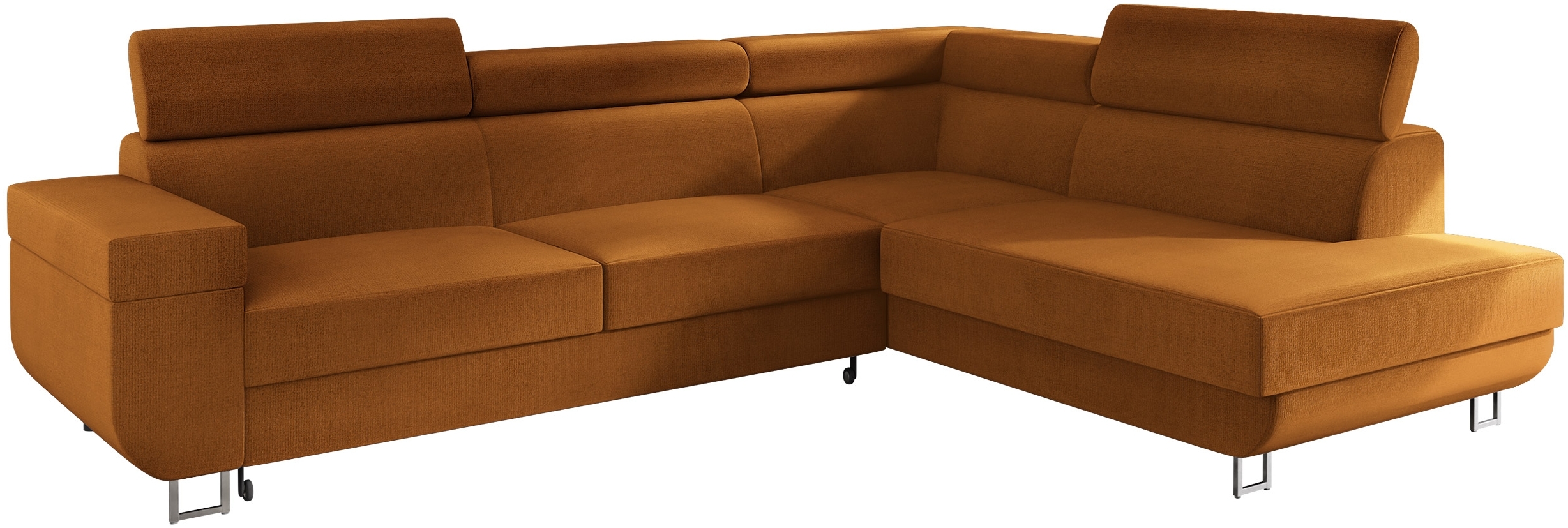 Ecksofa Fonti in der Farbe Manila 31 bietet Ihnen höchsten Sitzkomfort und eine praktische Schlaffunktion. Mit einer Länge von 253 cm und einer Breite von 188 cm ist es ideal für Ihr Wohnzimmer. Die Schlaffläche misst 198 x 125 cm und der Bettkasten bietet zusätzlichen Stauraum. Die verstellbaren Kopfstützen und die weiche Sitzfläche sorgen für entspannte Stunden. **Highlights** - Ausziehbar mit Schlaffunktion für zusätzlichen Schlafplatz - Integrierter Bettkasten für praktischen Stauraum - Verstellbare Kopfstützen für individuellen Komfort - Hochwertige Materialien für besten Sitzkomfort - Robuste Konstruktion mit Metall- und Kunststofffüßen **Produkteigenschaften** - Maße (LxBxH): 253 x 188 x 71 - 86 cm - Schlaffläche: 198 x 125 cm - Bettkasten Größe: Höhe: 15 cm, Breite: 82 cm, Länge: 170 cm - Sitzfläche: Holz-Konstruktion, Wellenfeder, Filz, Schaumstoff T-2844 (Dicke: 9 cm), Polsterwatte - Lehne: Holz-Konstruktion, Faserplatte, Schaumstoff T-2844 (Dicke: 5 cm), Polsterwatte - Vorderfüße: Metall Chrom, Hinterfüße: Kunststoff - Polsterlehnen fest montiert **Lieferumfang** - Ecksofa Fonti - Lieferung in die Wohnung - Montage durch den Kunden erforderlich - Ohne Dekoration