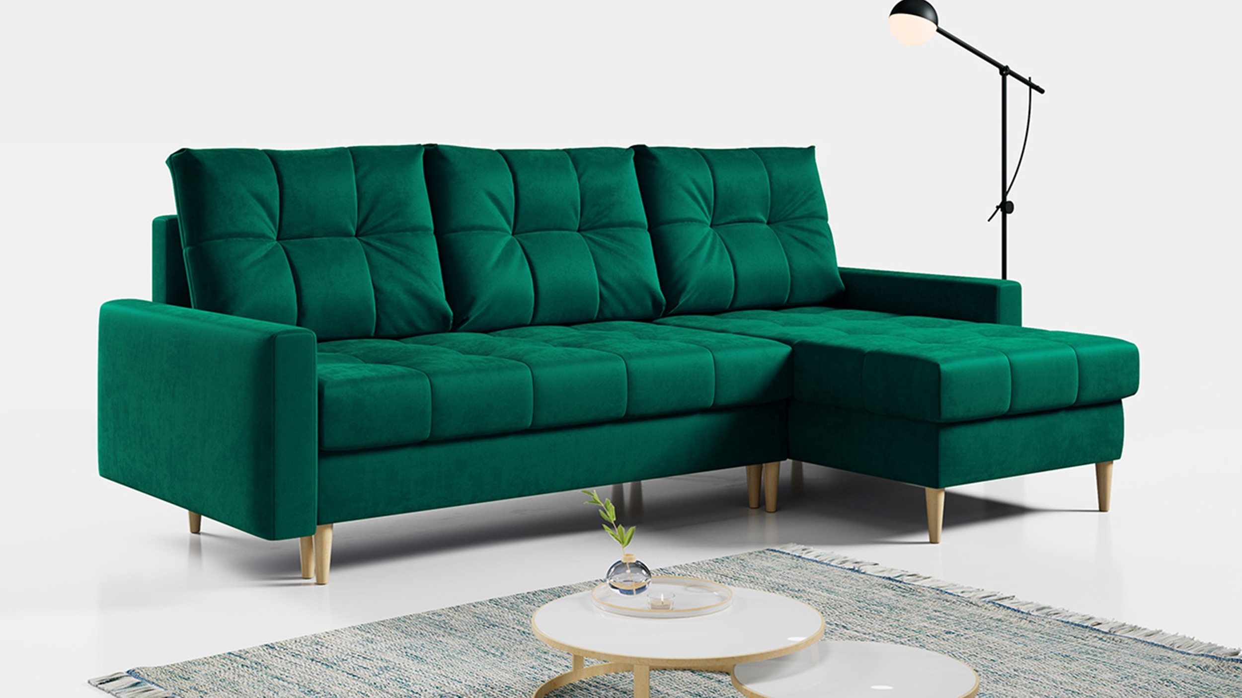 **Wohnkomfort neu definiert: Das Ecksofa im skandinavischen Design** Astra Ecksofa im skandinavischen Stil besticht durch seine klare, minimalistische Ästhetik und seine Funktionalität. Dieses Möbelstück vereint schlichtes Design mit hoher Qualität. Die Kombination aus schlichter Schönheit, natürlichen Materialien und praktischen Details macht das Ecksofa zu einem zeitlosen Möbelstück, das in jeder Wohnung eine gute Figur macht und ein gemütliches Ambiente schafft. **Ecksofa mit Schlaffunktion** Dieses Ecksofa begeistert nicht nur durch sein elegantes Aussehen und seinen Komfort, sondern hat auch eine Schlaffunktion. Dank des einfachen Klappmechanismus verwandelt sich das Sofa schnell in ein bequemes Bett und bietet zusätzlichen Schlafplatz für Gäste oder Haushaltsmitglieder. **Praktischer Bettkasten** Die Funktionalität des Sofas macht es zur idealen Wahl für Wohnungen, in denen es auf eine effiziente Raumnutzung ankommt. Der Bettkasten, der diskret unter dem Sitz versteckt ist, vereint Ästhetik und Funktionalität und bietet zusätzlichen Stauraum. **Lose Kissen** Das Ecksofa ist mit losen Kissen auf der Basis ausgestattet, die einen außergewöhnlichen Komfort und eine einfache Anpassung an die individuellen Bedürfnisse bieten. Dadurch können die Weichheit und die Form der Rückenlehne frei angepasst werden, was den Bedienkomfort erhöht. **Eleganz und Funktionalität in skandinavischem Design** Die Ecksofas im skandinavischen Stil zeichnet sich durch ihre Eleganz und hohe Funktionalität aus. Ihre minimalistischen Linien verleihen dem Innenraum eine einladende Gemütlichkeit und eine moderne Ästhetik. Dank des durchdachten Designs fügt sich das Sofa nahtlos in unterschiedlichste Raumgestaltungen ein. **Ästhetik und Funktionalität** Die Ecke ist mit einer Schlaffunktion ausgestattet, was sie zu einer hervorragenden Lösung für den täglichen Gebrauch macht. Das innovative Klappsystem Automat DL erleichtert das Aufklappen des Mittelteils und sorgt für zusätzlichen Komfort und Bequemlichkeit.