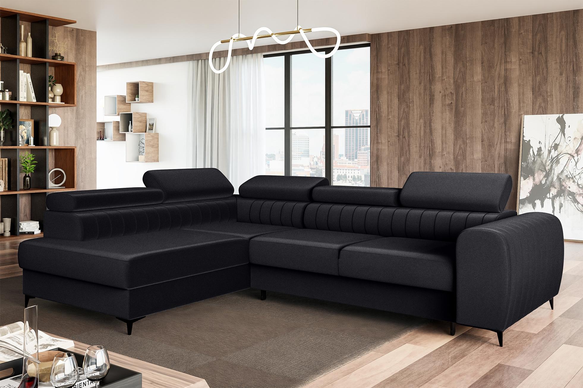 in EcksofasMEBLINI Schlafcouch mit Bettkasten - PORTO - 269x204x72cm Links - Schwarz Samt - Ecksofa mit Schlaffunktion - Sofa mit Relaxfunktion und Kopfstützen - Couch L-Form - Eckcouch - Wohnlandschaft
