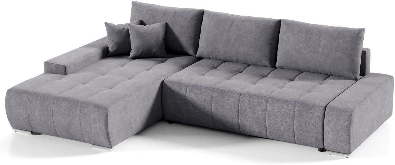 in EcksofasMars Meble Sofa Draco mit Schlaffunktion + Bettkasten Couch Wohnzimmer Polstermöbel (Links Seite, grau) DRAC_L