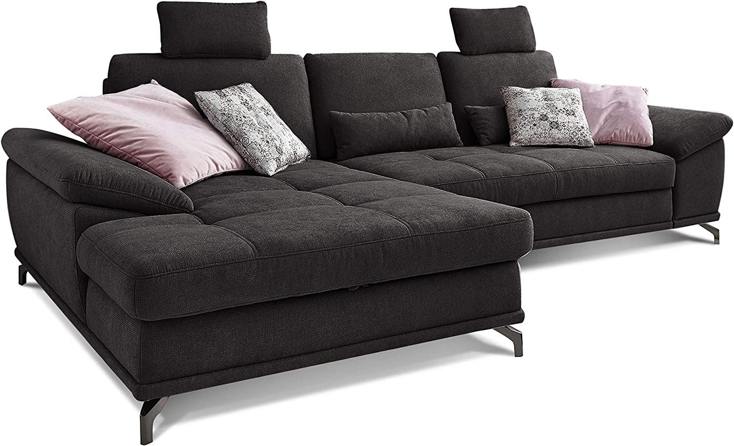 | Name | Cavadore L-Form-Sofa Castiel mit Federkern / Große Eckcouch mit Sitztiefenverstellung, Kopfstützen und XL-Longchair / 312 x 114 x 173 / Webstoff, Schwarz |