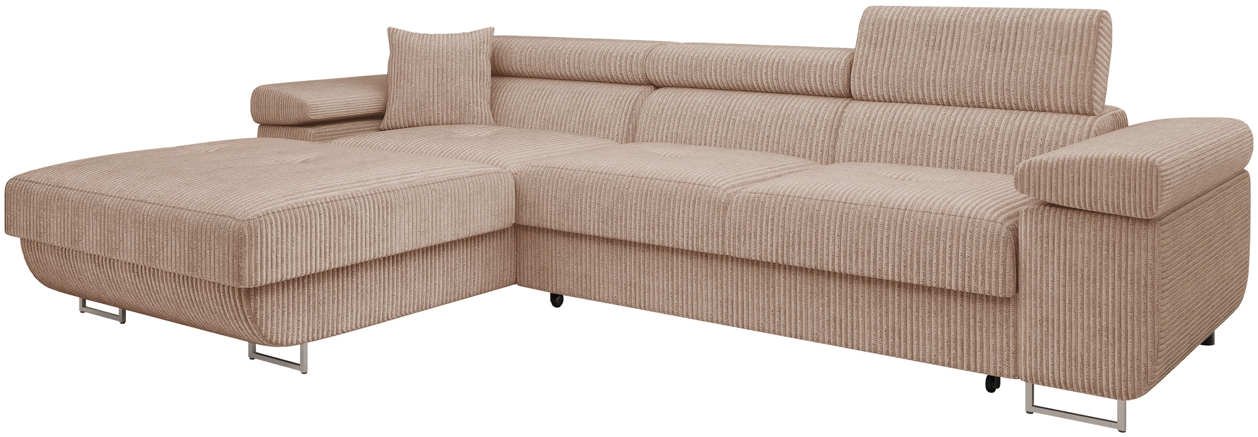 Ecksofa Torezio Mini Cord mit BettkastenSchlaffunktion und Einstellbare Kopfstützen (Farbe: Poso 52, Seite: Links)