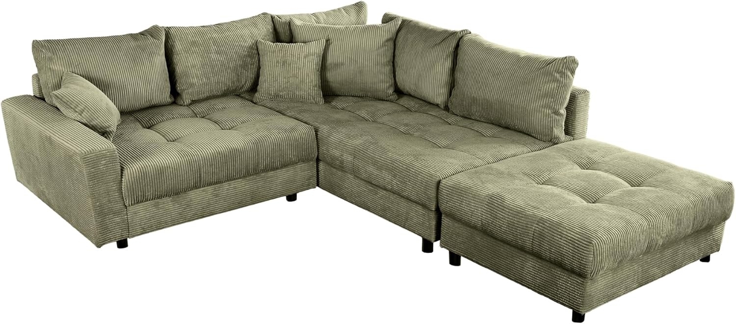 | Name | riess-ambiente Ecksofa KENT 220cm grün · Couch aus Cord in L-Form inkl. Hocker mit Federkern, Einzelartikel 1 Teile, Wohnzimmer · Wohnlandschaft · Eckcouch · flexible Ottomane · Modern |