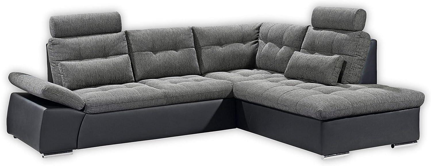 Ecksofa JAK Couch Schlafcouch Sofa Lederlook grau schwarz Ottomane rechts L-Form