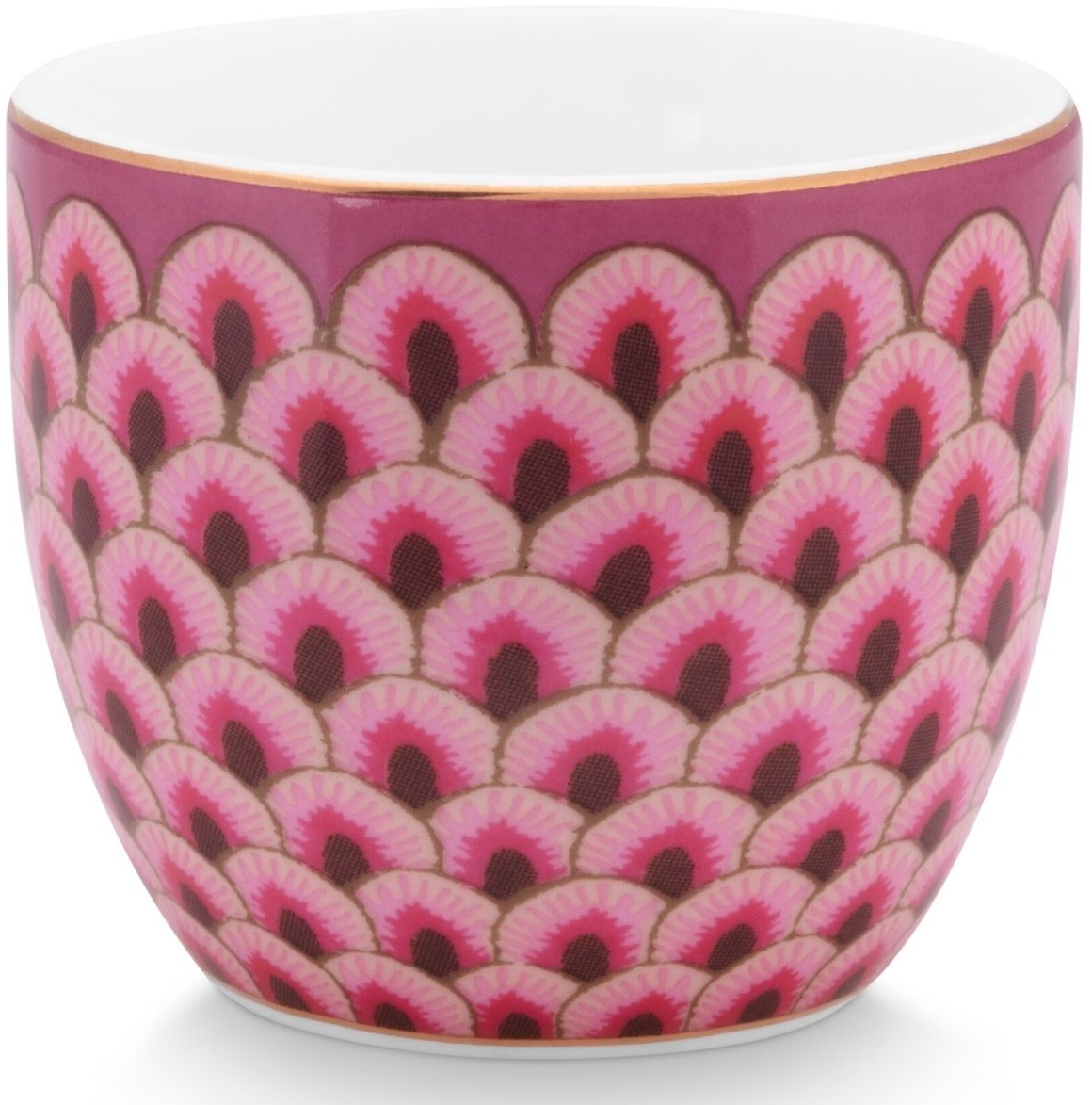 Genießen Sie Ihr Frühstück mit dem stilvollen Eierbecher Flower Festival Scallop in Dunkelrosa von Pip Studio. Hergestellt aus hochwertigem Porzellan, überzeugt dieser Eierbecher durch sein elegantes Seigaiha-Waves-Muster und den goldenen Rand. Mit einem Durchmesser von 4,5 cm und einer Höhe von 4 cm ist er perfekt für ein leckeres Ei. Bitte beachten Sie, dass der Eierbecher nicht spülmaschinenfest und nicht mikrowellengeeignet ist. **Highlights** - Hochwertige Verarbeitung für Langlebigkeit - Elegantes Seigaiha-Waves-Muster für einen besonderen Look - Goldrand verleiht dem Eierbecher einen luxuriösen Touch - Ideal für ein stilvolles Frühstück - Ausgefallenes Design bringt Urlaubsfeeling auf den Tisch **Produkteigenschaften** - Material: Porzellan - Maße (Ø x H): 4,5x4 cm - Nicht spülmaschinenfest - Nicht mikrowellengeeignet