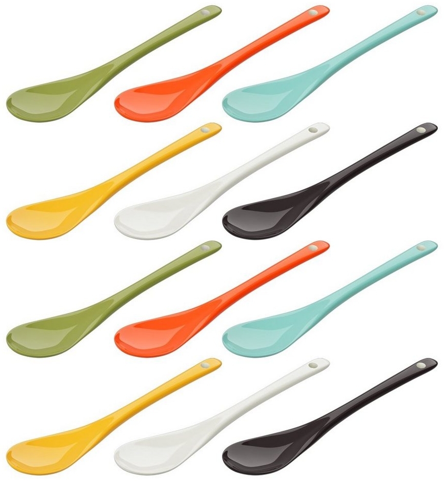 Wellgro Esslöffel Eierlöffel Porzellan - bunte Porzellanlöffel (12 Stück)