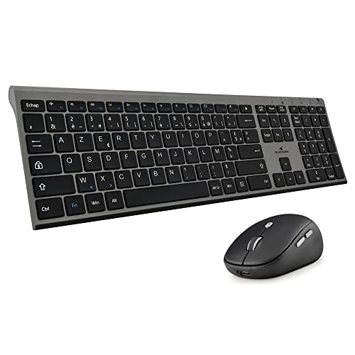 in EingabegeräteBlueStork - Set Tastatur und Maus kabellos Grapheme – kabellos mit Smart Dongle – leise Klicks – ultradünnes Design – ergonomisch – wiederaufladbar – Grau – AZERTY FR