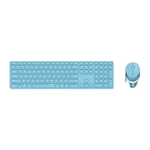 Rapoo 9850M kabelloses Tastatur-Maus Set Wireless Deskset 1600 DPI Sensor wiederaufladbarer Akku flaches Aluminium Design DE-Layout QWERTZ PC & Mac - blau