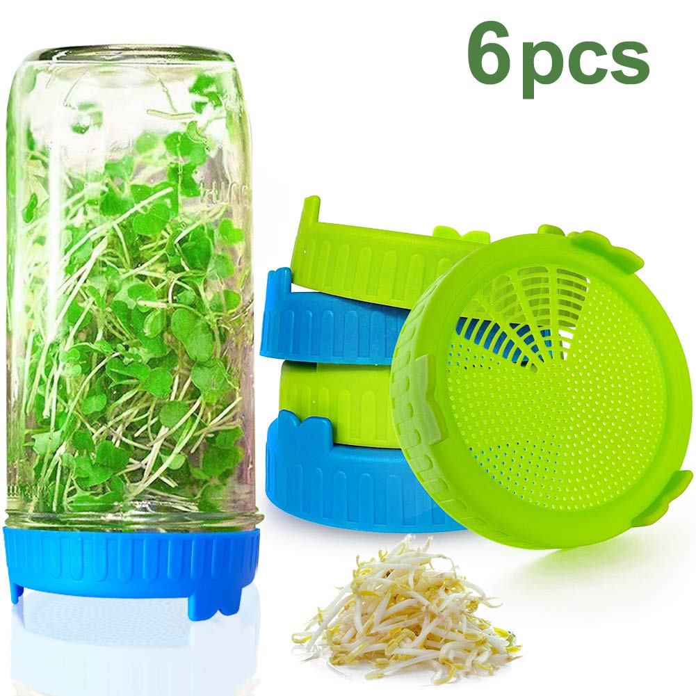 in EinmachgläserSprossendeckel für Einmachgläser mit breiter Öffnungeinfaches Abspülen und Abtropfen, Kunststoffsieb zum Anbau von Bohnenkeimen, Brokkoli, Alfalfa, Salatkeimen, 6 Stück