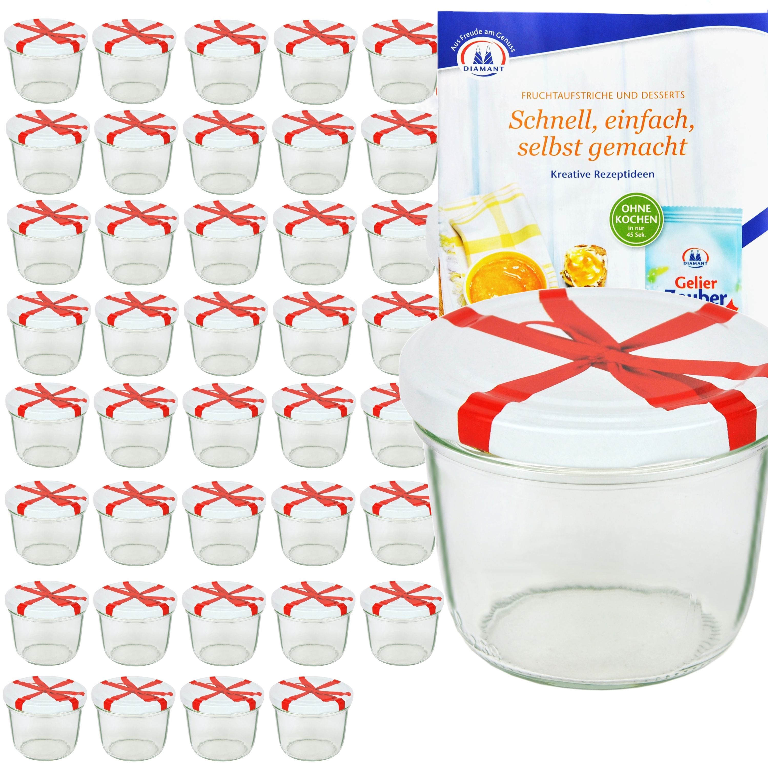 in Einmachgläser40er Set Sturzglas 230 ml mit Schleifendekor Deckel inkl. Diamant Gelierzauber Rezeptheft