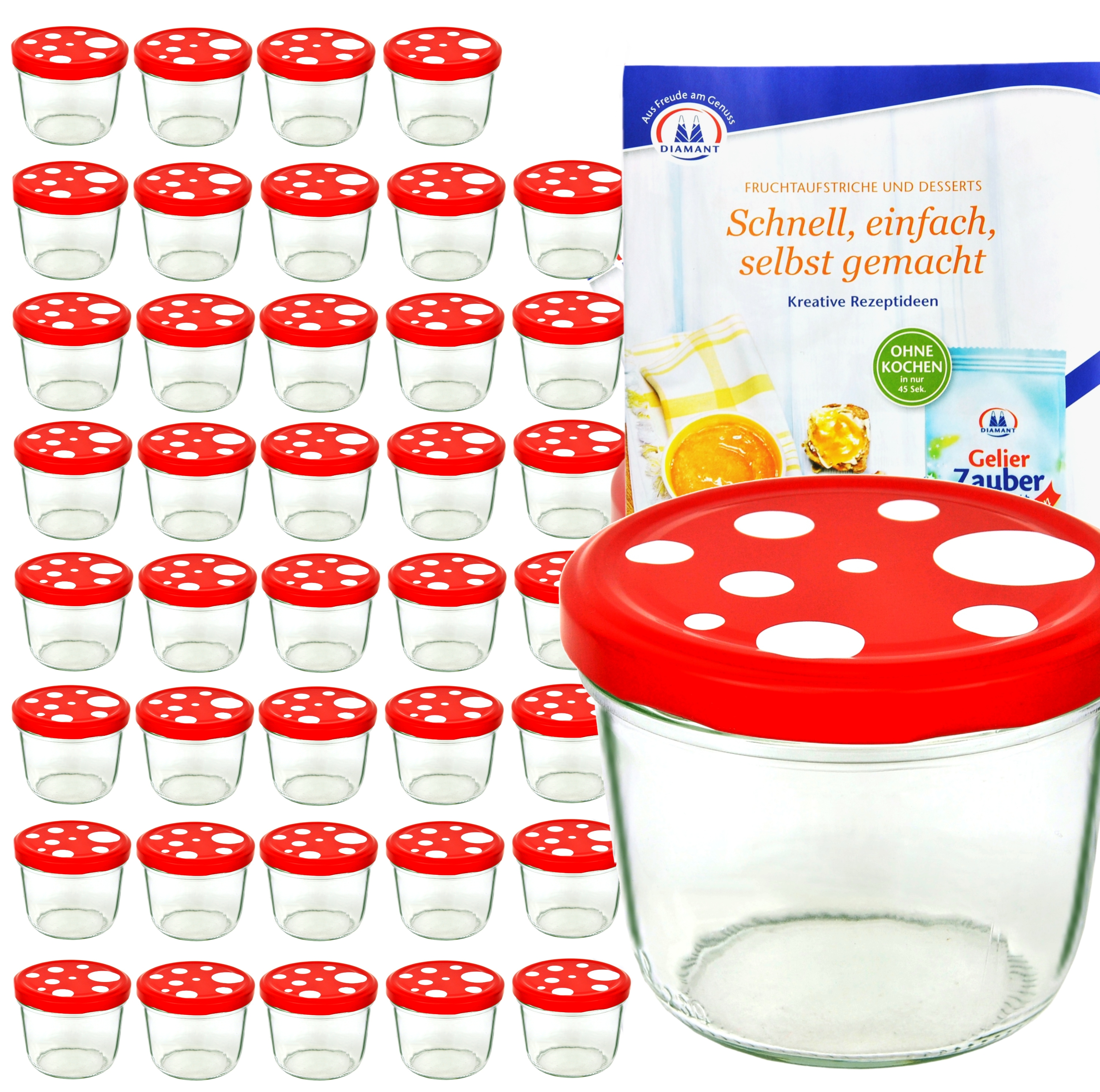 in Einmachgläser40er Set Sturzglas 230 ml Fliegenpilz rot weiß gepunkteter Deckel inkl. Diamant Gelierzauber Rezeptheft