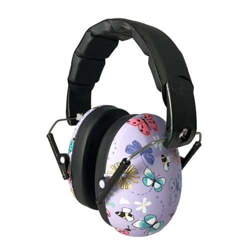 - Die Ohrenschützer sind mit einem bunten Schmetterlingsdesign gestaltet, das Kinder anspricht.