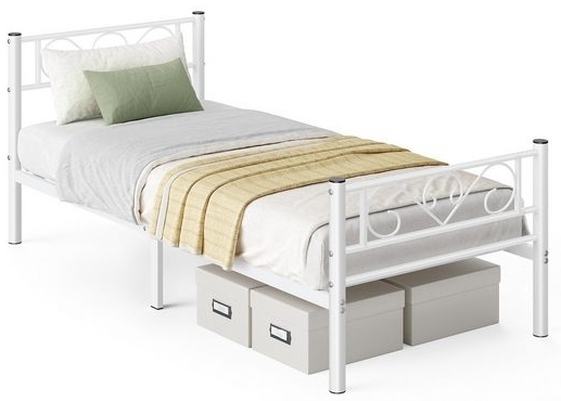 **[Robust und stabil]** Hochwertige Stützbalken und 6 langlebige Metallbeine mit U-förmigen Metallverbindern verleihen diesem Bettrahmen eine hohe Stabilität und eine Belastbarkeit von 230 kg – kein Wackeln, keine lästigen Geräusche **[Viel Platz unter dem Bett]** Mit einem Abstand von 26,5 cm zwischen Boden und Stützbalken können Sie Ihre Aufbewahrungsboxen problemlos darunter verstauen; machen Sie sich keine Sorgen um die Reinigung, der Saugroboter kann durchfahren **[Stilvoll & komfortabel]** Schlichtes Design und klassische Farbe schaffen einen stilvollen Bettrahmen, der zu zahlreichen Stilen passt; legen Sie beim Lesen ein Kissen hinter sich und lehnen Sie sich daran an – Das hohe Kopfteil ermöglicht mehr Komfort **[Mitgelieferte Fußpads]** Jedes Bein dieses Bettgestells ist mit einem Fußpad versehen, um Geräusche während der Bewegung zu reduzieren und den Boden vor Kratzern zu schützen **[Einfache Montage]** Dank der klaren Anleitung und der gekennzeichneten Teile können Sie dieses Einzelbettgestell mühelos zusammenbauen **Produktdetails:** - Farbe: Mattweiß - Material: Pulverbeschichtetes Metall - Größe: 208 x 91,8 x 86,4 cm (L x B x H) - Gewicht: 14 kg - Max. statische Belastbarkeit: 230 kg **Lieferumfang:** - 1 x Bettgestell - 1 x Zubehörpaket - 1 x Anleitung **VASAGLE Hinweise:** - Stellen Sie sicher, dass alle Teile und Schrauben vor dem Gebrauch fest angebracht sind. - Eine Matratze ist nicht im Lieferumfang enthalten.