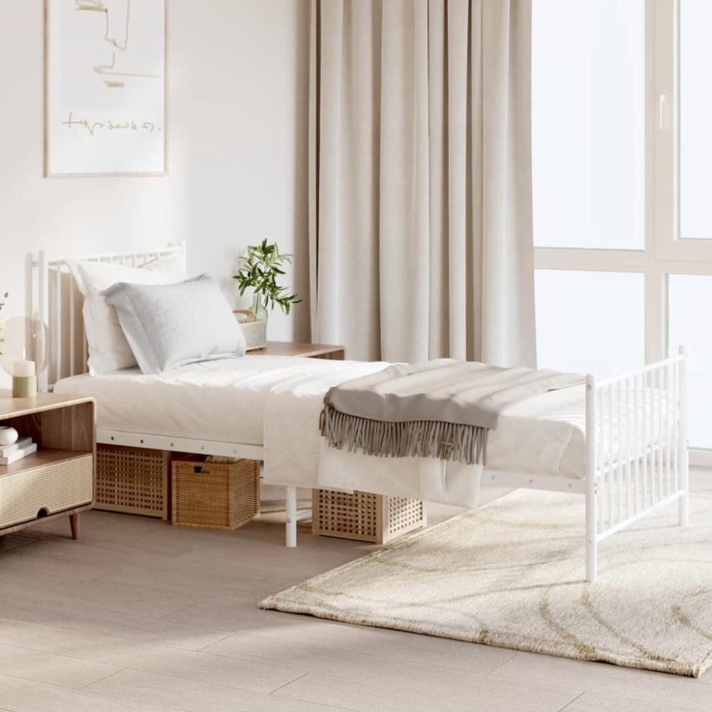 Das Bettgestell mit Kopfteil und Fußteil in Weiß aus Stahl verleiht Ihrer Einrichtung einen Hauch von Eleganz. Das langlebige Material Stahl bietet Robustheit und Stabilität. Der Lattenrost aus Stahl minimiert Geräusche während des Schlafens und verlängert die Lebensdauer Ihrer Matratze. Das praktische Design des Bettes bietet Stauraum unter dem Bettgestell für Kisten und Körbe, um das Schlafzimmer ordentlich zu halten. Das Kopf- und Fußteil des Bettgestells hält Ihre Matratze an ihrem Platz und dient gleichzeitig als Rückenlehne. Bitte beachten Sie, dass keine Matratze im Lieferumfang enthalten ist. Die Montageanleitung ist im Lieferumfang enthalten. **Highlights** - Verleiht Ihrer Einrichtung einen Hauch von Eleganz - Langlebiges Material: Stahl bietet Robustheit und Stabilität - Lattenrost aus Stahl minimiert Geräusche und verlängert die Lebensdauer der Matratze - Praktischer Stauraum unter dem Bettgestell - Kopf- und Fußteil halten die Matratze an ihrem Platz und dienen als Rückenlehne **Produkteigenschaften** - Farbe: Weiß - Material: Stahl - Abmessungen: 206 x 85 x 90,5 cm (L x B x H) **Lieferumfang** - Bettgestell mit Kopfteil und Fußteil in Weiß aus Stahl - Montageanleitung