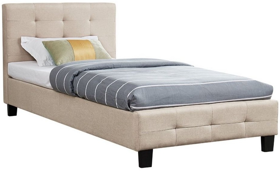 in EinzelbettenCARO-Möbel Polsterbett Ohio Bettgestell 90x200 cm Einzelbett Designbett inklusive Lattenrost Textilbezug in beige