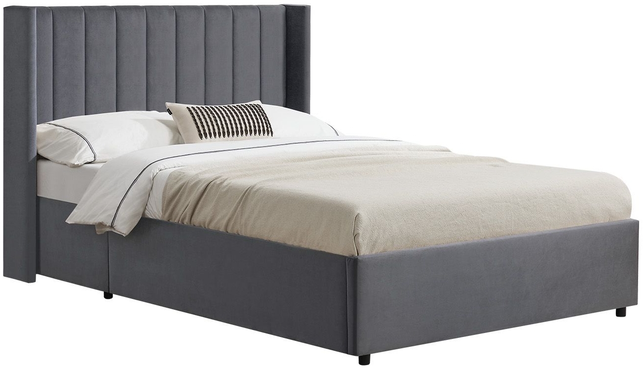 Das Polsterbett Savona 120x200 cm in Dunkelgrau vereint Eleganz und Funktionalität. Der edle Samt-Bezug und die weiche Polsterung sorgen für höchsten Komfort. Der große Bettkasten bietet viel Stauraum für Bettwäsche und mehr. Mit dem gefederten Lattenrost genießen Sie einen traumhaften Schlaf. Das geradlinige Design verleiht Ihrem Schlafzimmer ein modernes Ambiente. **Highlights** - Großes, gepolstertes Kopfteil für gemütliches Anlehnen - Weicher Samt-Bezug für angenehmes Hautgefühl - Hoher Schlafkomfort dank gefedertem Lattenrost - Aufklappbarer Bettkasten bietet viel Stauraum - Geradliniges Design für modernes Ambiente **Produkteigenschaften** - Liegefläche: 120x200 cm - Stellfläche: 136x216 cm - Gesamthöhe: 115 cm - Höhe Seitenteil: 36 cm - Stärke Kopfteil: 8 cm - Max. Belastbarkeit: 250 kg - Material Gestell: MDF-Holz - Material Polster: Schaumstoff - Material Bezug: Samtstoff, Polyester-Baumwolle **Lieferumfang** - 1 x Bettgestell - 1 x Lattenrost - 1 x Montagematerial - 1 x Anleitung