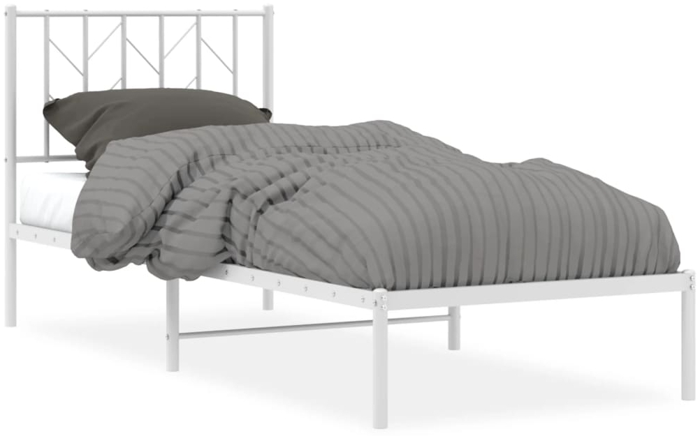 Beschreibung Das vidaXL Bettgestell mit Kopfteil aus Metall in Weiß (80 x 200 cm) vereint Stabilität und Funktionalität. Die robuste Stahlkonstruktion sorgt für außergewöhnliche Haltbarkeit. Mit einem integrierten Lattenrost, Mittelfüßen und zusätzlichem Stauraum unter dem Bett bietet es optimalen Komfort. Das Kopfteil unterstützt Ihren Rücken beim Lesen oder Entspannen. **Highlights** - Robustes Metallgestell für Stabilität - Lattenrost und Mittelfüße für Halt und Atmungsaktivität - Zusätzlicher Stauraum unter dem Bett - Kopfteil für hervorragende Rückenunterstützung - Zeitloses Design für jedes Schlafzimmer **Produkteigenschaften** - Farbe: Weiß - Material: Stahl - Gesamtabmessungen: 207 x 85 x 90 cm (L x B x H) - Höhe unter dem Bett: 26 cm - Geeignete Matratzengröße: 80 x 200 cm (B x L) - Zusammenbau erforderlich **Lieferumfang** - Bettgestell mit Kopfteil aus Metall in Weiß (80 x 200 cm) - Lattenrost und Mittelfüße - Ohne Matratze