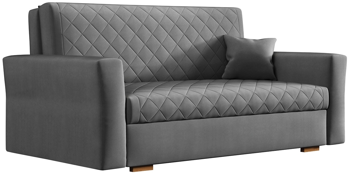 Das Mirjan24 'Viva Caro' Schlafsofa in Grau vereint Funktionalität und elegantes Design. Mit einer Länge von 160 cm, einer Breite von 98 cm und einer Höhe von 85 cm bietet es nicht nur einen komfortablen Sitzplatz, sondern auch eine großzügige Schlaffläche von 196 x 132 cm. Der integrierte Bettkasten mit den Maßen 129 x 66 x 19 cm sorgt für zusätzlichen Stauraum. **Highlights** - Ausziehbares Sofa mit Schlaffunktion für flexible Nutzung - Integrierter Bettkasten für praktischen Stauraum - Freistehendes Design mit überzogenem Rücken - Hochwertige Holzkonstruktion für Stabilität - Inklusive Kissen-Set für zusätzlichen Komfort **Produkteigenschaften** - Maße (LxBxH): 160 x 98 x 85 cm - Schlaffläche: 196 x 132 cm - Bettkasten Maße (LxBxH): 129 x 66 x 19 cm - Material: Holzkonstruktion (Kiefernholz) + Spanplatte - Sitzfläche: Schaumstoff T25/42 + Wellenfeder - Lehne: Schaumstoff T25/42 + HDF-Platte - Füße aus Holz - Polsterlehnen fest montiert - Kissen ohne Reißverschluss **Lieferumfang** - Schlafsofa 'Viva Caro' - Kissen-Set - Ohne Dekoration